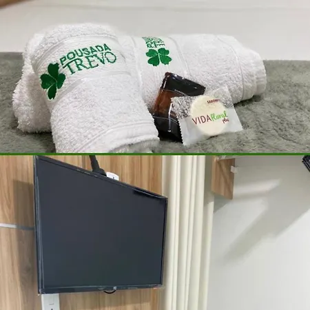 각 객실에는 실내 온도 조절기, 평면 스크린 TV가 있습니다. Pousada Trevo의 객실에는 대리석 바닥이 있습니다.